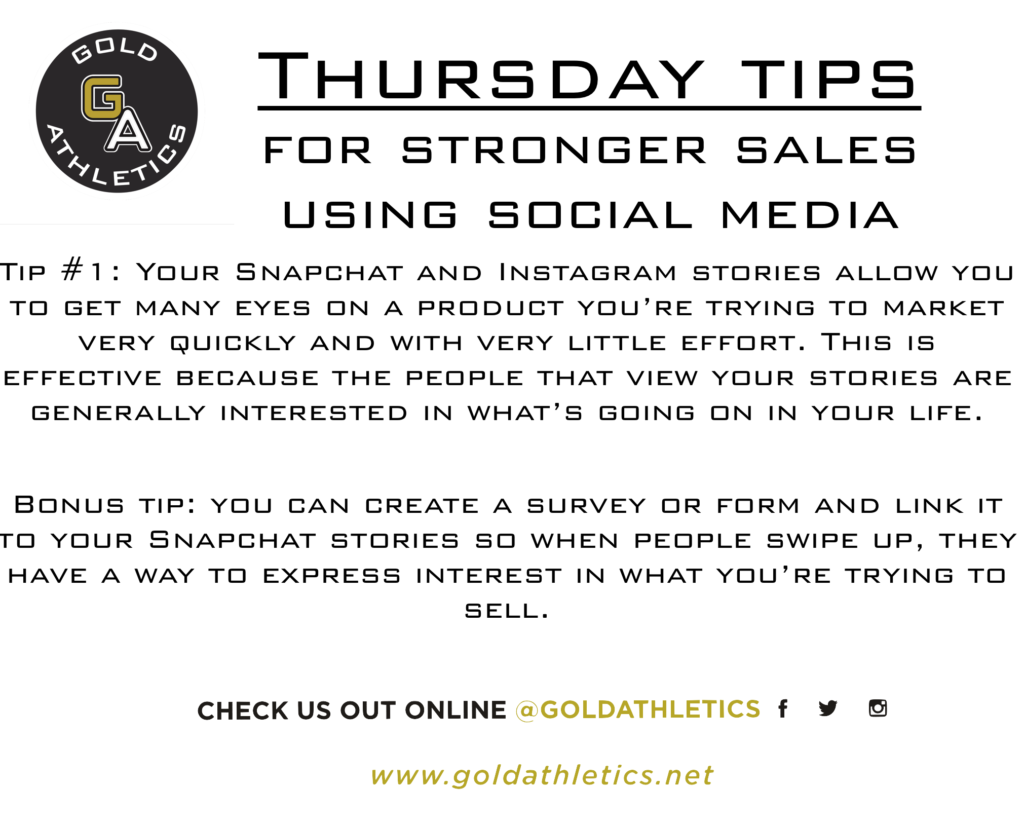 Written by Luca Serio Gold Athletics Social Media Intern Tip #1: Your Snapchat and Instagram stories allow you to get many eyes on a…